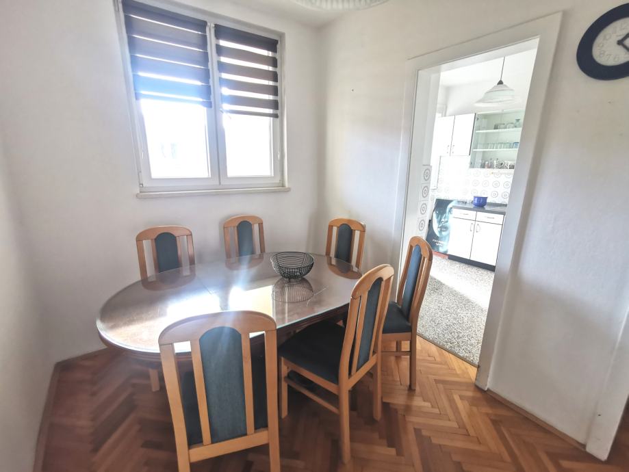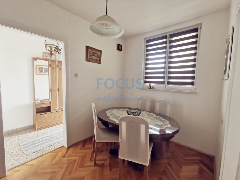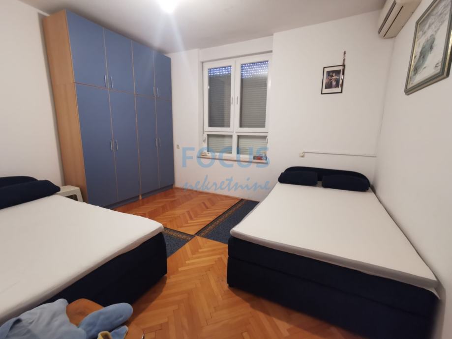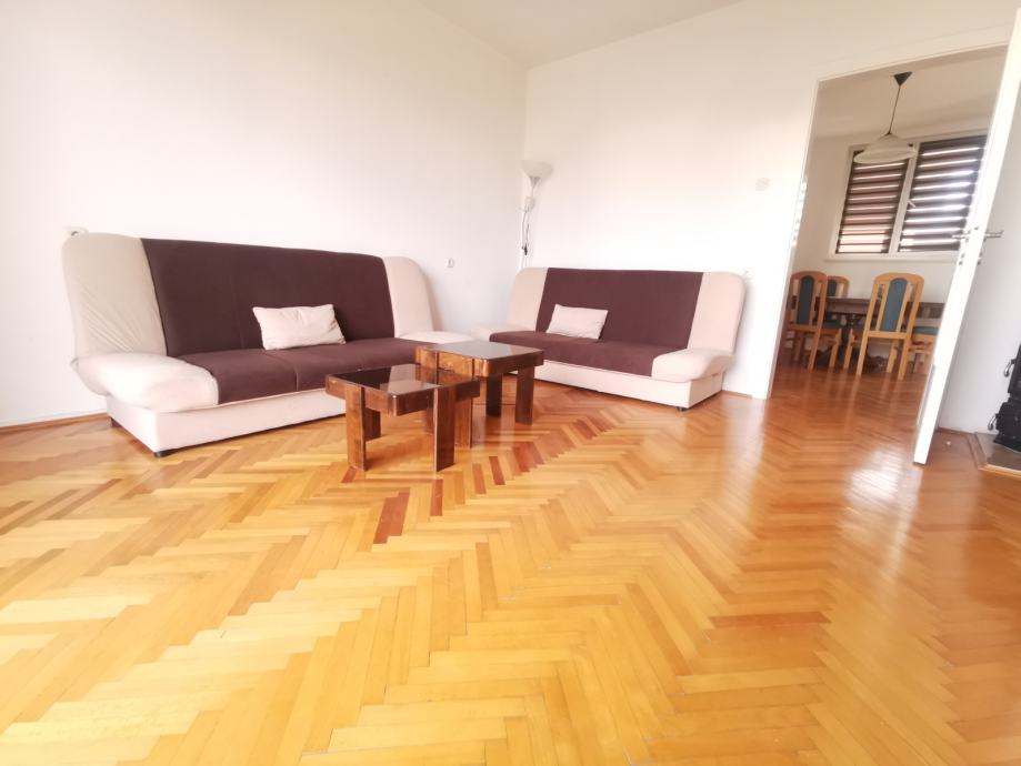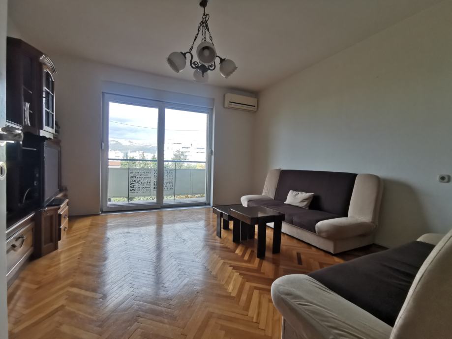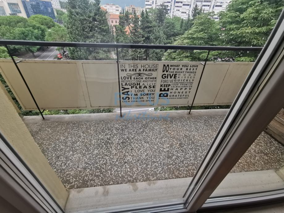 Iznajmljujemo stan u stambenoj zgradi na 4.katu, lift, površine 65m2. Stan se sastoji od predsoblja, blagavaonice, kuhinje, dnevnog dijela sa izlazom na lođu, spavaće sobe, kupaonice, ostave i lođe ispred ulaza u stan. Stan je opremljen svim kućanskim uređajima. U blizini je svih važnijih sadržaja i ustanova, nalazi se nasuprot Županijskog suda u Splitu. Idealan za studente Pravnog fakulteta.