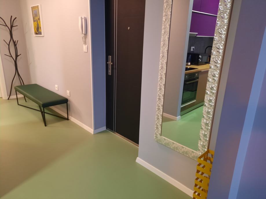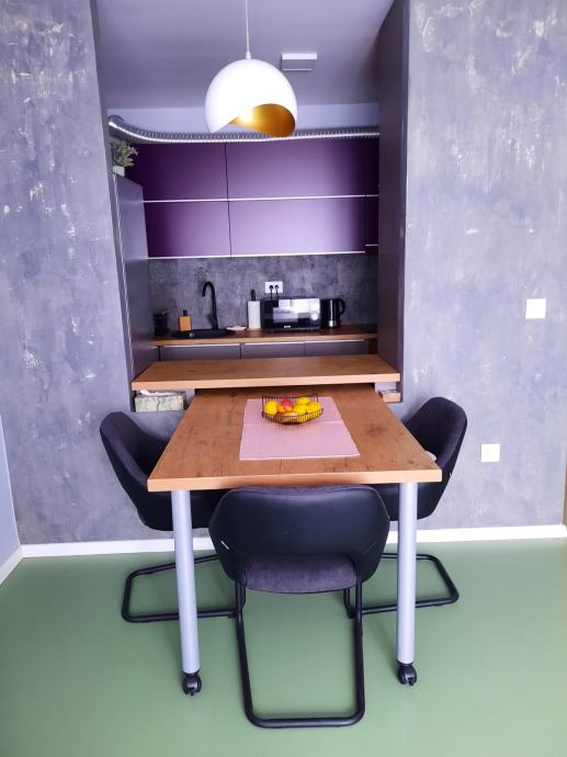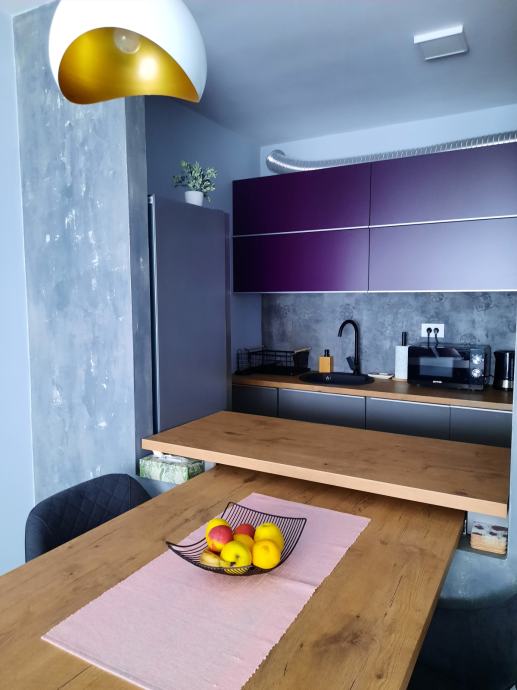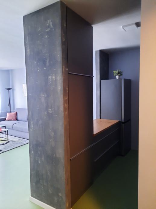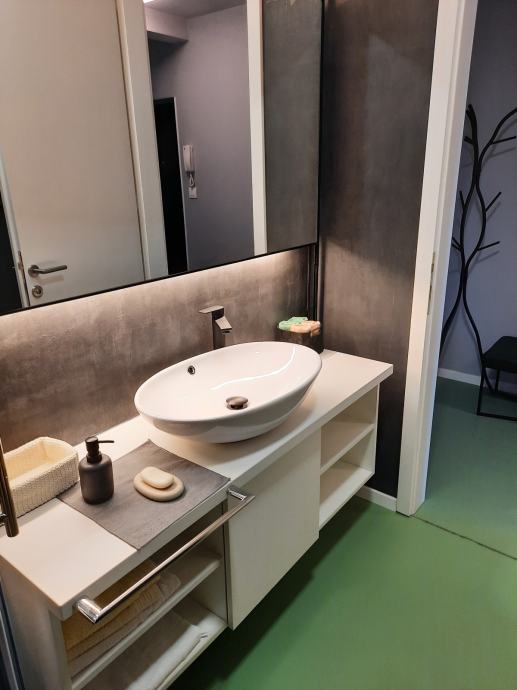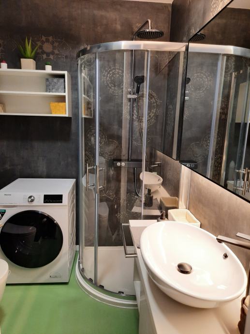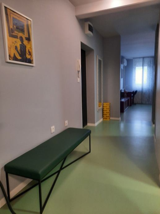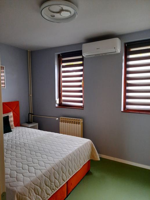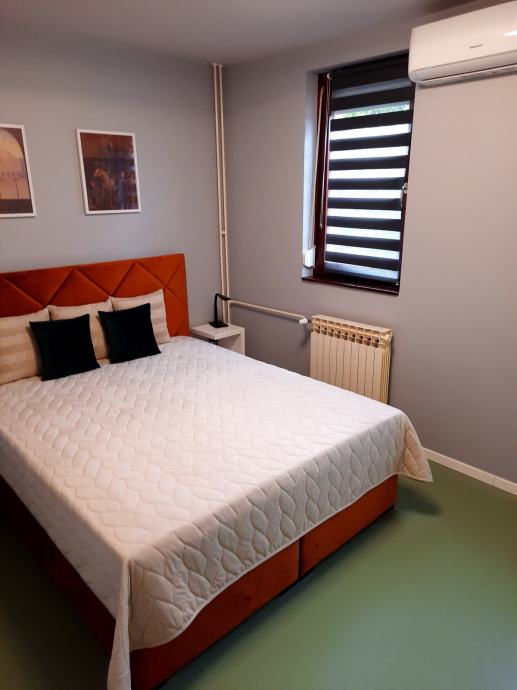 Moderan, u cijelosti obnovljen stan koji se po prvi put daje u najam, s ugrađenim protuprovalnim vratima i sastoji se od dnevnog boravka, blagovaonice i kuhinje međusobno integrirane u open space, odvojene spavaće sobe sa Hespo krevetom 160x200 cm i velikim ugradbenim ormarom, te kupaonice sa tuš-kabinom, a sve prostorije povezuje hodnik u kojem je smješten walk-in ormar.