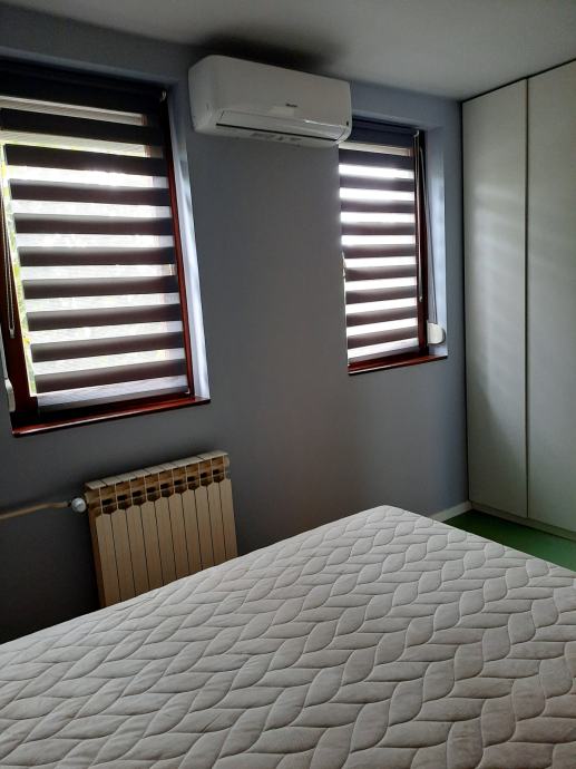 Stan je klimatiziran (inverter klima uređaji nalaze se u dnevnom boravku i u spavaćoj sobi) potpuno namješten novim namještajem i kompletno opremljen novim uređajima (kombinirani hladnjak, perilica suđa, mikrovalna pećnica, štednjak indukcijska ploča i pećnica, napa, perilica sa sušilicom za rublje), novim posuđem, priborom i posteljinom. Trosjed u dnevnom boravku može se namjestiti u krevet za spavanje s madracem 160x200 cm, neovisno o sjedećem dijelu.