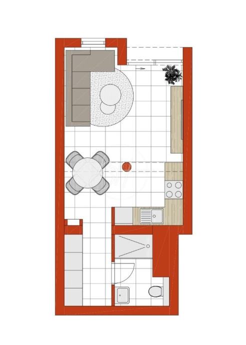 Stan se sastoji od kuhinje s dnevnim boravkom, jedne spavaće sobe i jedne kupaonice.