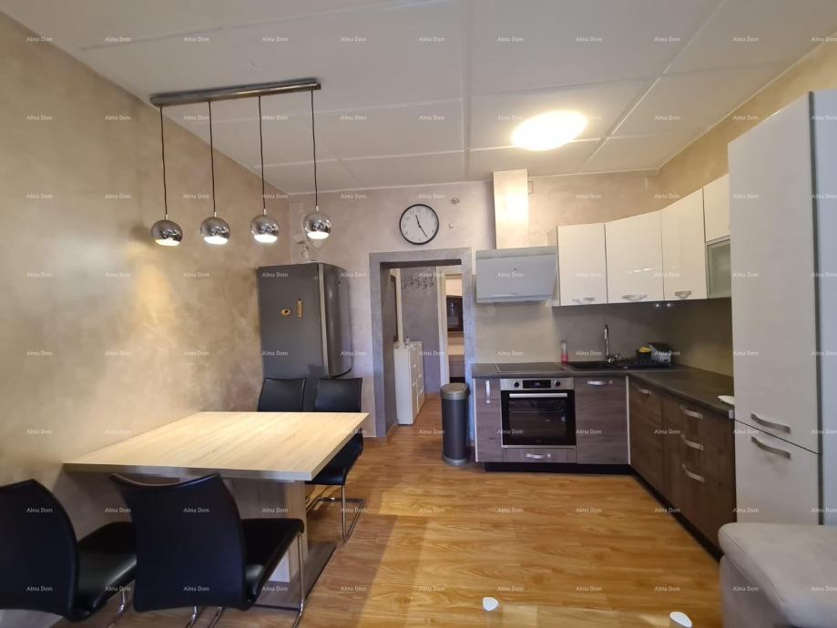 Stan je opremljen namještajem. Kuhinja s novom rernom te električnom pločom za kuhanje, perilica suđa, napa, hladnjak.
