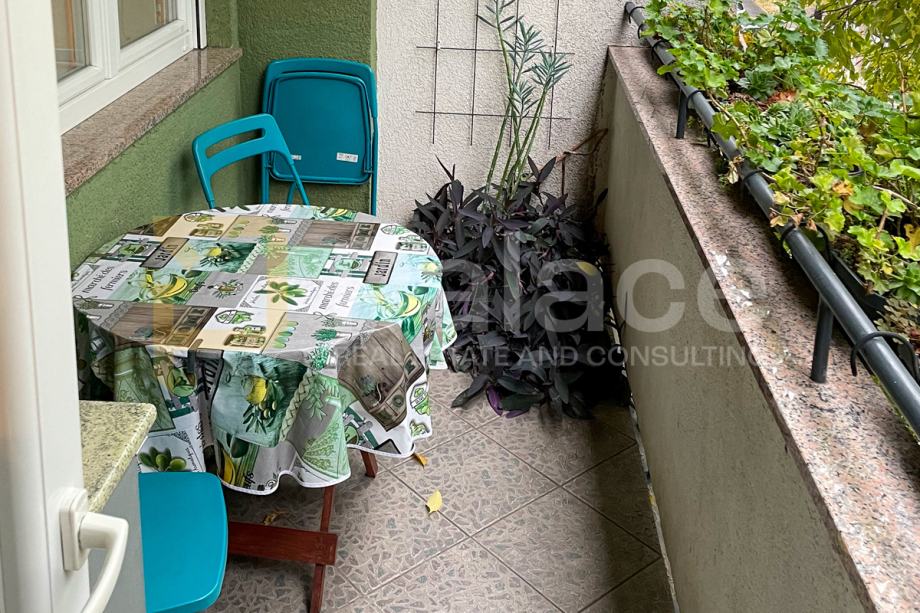 Sastoji se od dnevnog boravka s kuhinjom i blagovaonicom otvorenog tipa, dvije spavaće sobe, dva balkona (s pogledom na istok i zapad!), hodnika, ostave, kupatila i odvojenog WC-a. U podrumu se nalazi dodatni prostor – spremište od 5m².
