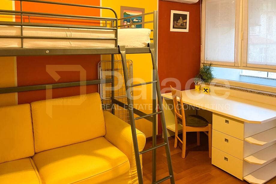 Dodatne pogodnosti uključuju veliku šupu, mogućnost parkiranja u dvorištu zgrade, te prodaju s namještajem po mjeri i velikim aparatima poput ugradbene perilice suđa, ploče za kuhanje, pećnice, samostojećeg frižidera, perilice i sušilice rublja, TV-a i inverterske klime s dvije unutarnje jedinice.Stan je odmah useljiv i bez dodatnih troškova ili ulaganja – sve je već obnovljeno i potpuno opremljeno.
