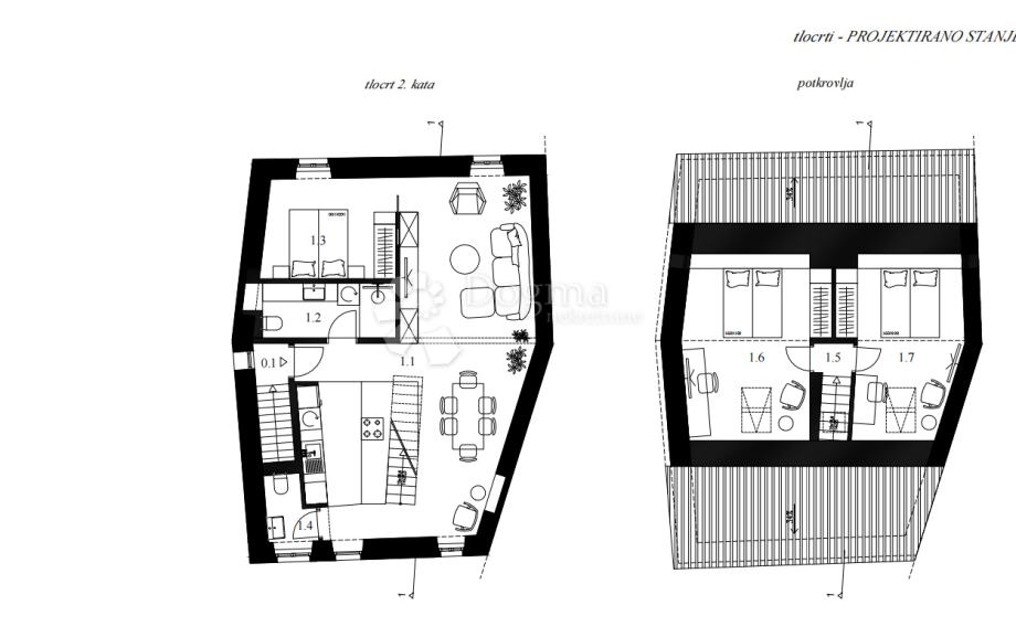 Kat: drugi kat + visoko potkrovlje