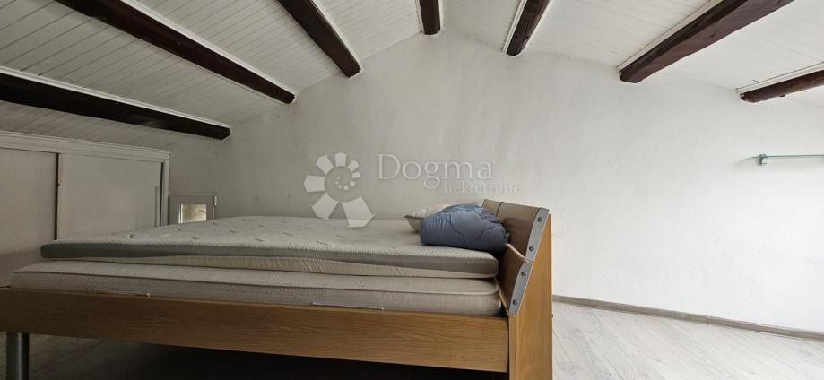 Opis stana: Na drugom katu nalazi se hodnik koji dijeli dnevni i spavaći dio. Na ovoj etaži nalaze se dvije spavaće sobe, jedno kupatilo, dodatno kupatilo u hodniku, te prostrani dnevni boravak s kuhinjom u open-space stilu. Drvene stepenice vode na visoko potkrovlje gdje se smjestilo još tri spavaće sobe i treće kupatilo. S krovnog prozora pruža se predivan pogled na more.