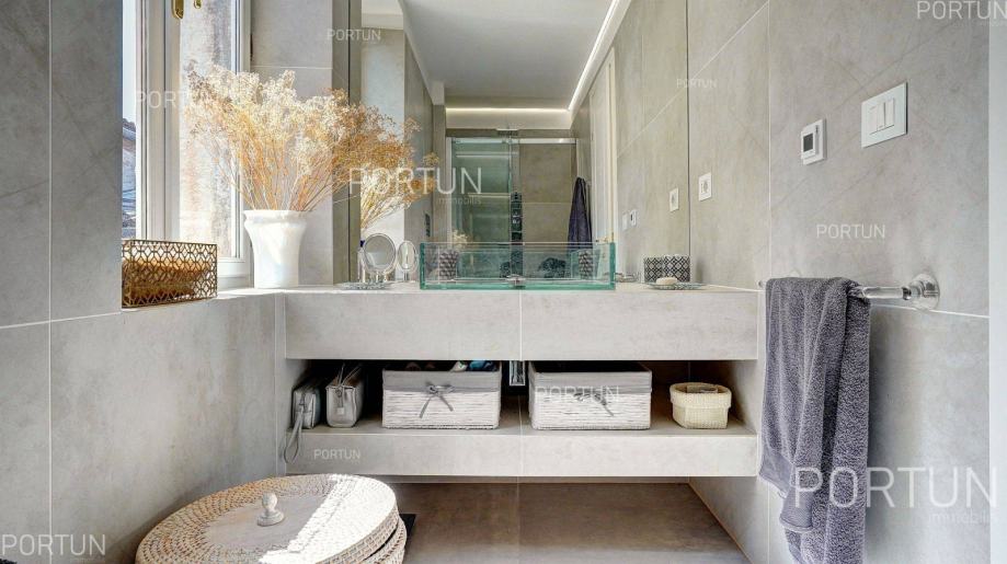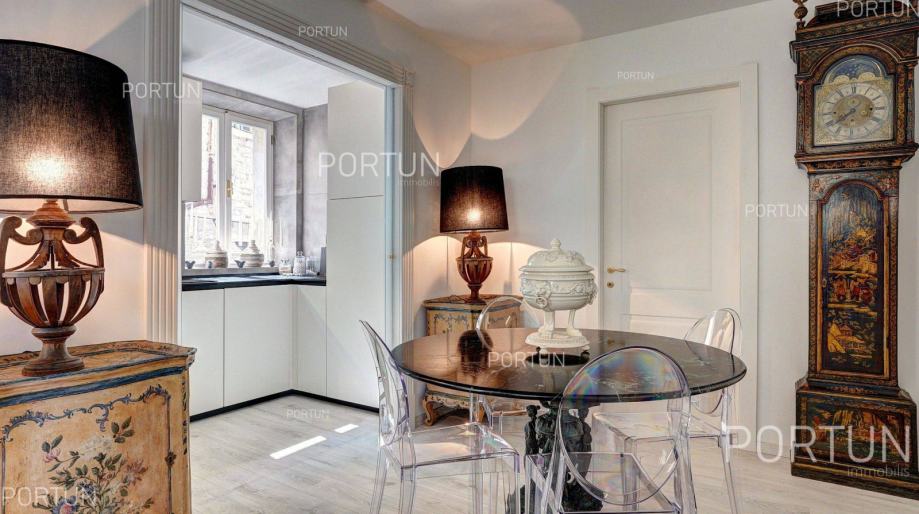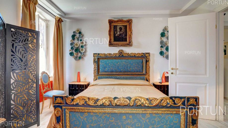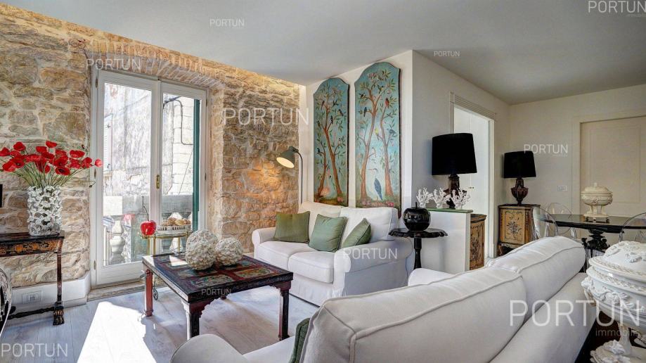 Temeljito obnovljen i maštovito uređen stan u klasičnom stilu nalazi se u užem centru grada, na par koraka od župne crkve te nudi raskošan interijer s antiknim namještajem.Stan je idealno smješten na prvom katu srednjovjekovne kamene palače te raspolaže s tri spavaće sobe, dvije kupaonice i otvorenim dnevnim dijelom. Pretežito svjetli interijer, nastao kombinacijom bijelih ploha i rustikalnih kamenih zidova ukusno je nadopunjen obnovljenim antiknim namještajem i dekoracijama. Boje i teksture su pažljivo birane pa stan usprkos klasičnom izgledu sadrži notu lepršavosti i svježine karakteristične za Mediteran. Vrlo rijetko se u starom gradu pronalazi stan s ovoliko prirodnog svjetla – dnevni boravak s kuhinjom i blagovaonicom se doslovno kupa u svjetlosti, a krasi ga i balkon s autentičnim kamenim barkonim stupićima. Stan je ujedno i vrlo prozračan što ne čudi jer je zgrada prilično odmaknuta od susjednih kuća.Kupaonice su nenametljivo uređene u modernom stilu i opremljene vrhunskom sanitarnom opremom te vrlo funkcionalne. Spavaće sobe su življih boja, a posebno je zbog raskošnog uređenja dojmljiva glavna spavaća soba gdje nalazimo ornamentalni krevet s visokim uzglavljem presvučenim u baršun te ostalo antikno pokućstvo.Izvrsno lociran stan, beskompromisno je uređen po pitanju kvalitete i stila te predstavlja odličan izbor za „razmažene“ kupce kojima ne treba dodatni apartman već žele sebi i svojim najdražima pružiti ono najbolje što postoji u starom gradu. KLJUČNE OSOBINE✔ Rovinj │ Centar ✔ Čar stanovanja u starogradskoj jezgri✔ Pogled na gradsku ulicu✔ Plaža Baluota 300 m ✔ 1. kat✔ Temeljito obnovljeno 2019. g.SAZNAJTE VIŠEViše informacija o oglasu broj 10579 saznajte na https://portun.comDirektan link na oglas: https://portun.com/hr/10579/Za sva dodatna pitanja na raspolaganju je agent posredovanja Alesandro Laginja +385919386003
