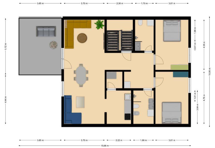 All utilities included: heating, cooling, water, electricity, and optical internet