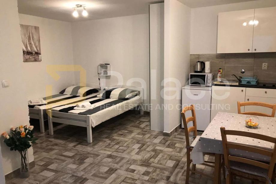 Stan se sastoji od kuhinje i sobe, ukupne neto korisne površine 24,55 m², s pripadajućim sporednim dijelovima u prizemlju: