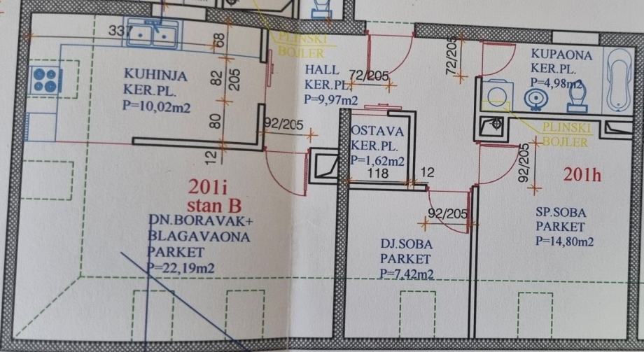 Stan na drugom katu koji se sastoji od prostora 201i i 201h i to - halla, kuhinje, dnevnog boravka sa blagovaonom, kupaone, ostave, spavaće sobe i dječje sobe ukupne netto površine 71,00 m2, a kojemu pripada kao sporedni dio spremište od 4 m2 u podrumu zgrade.