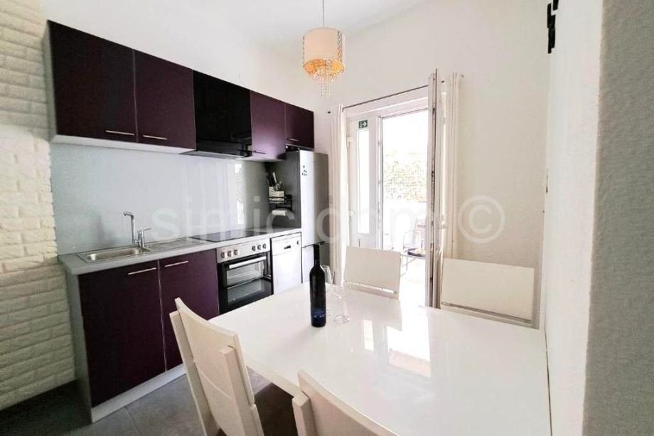 Na prodaju je izrazito šarmantan prizemni stan smješten u samom centru Kaštel Sućurca, sa vlastitim parkirnim mjestom što je velika prednost na takvoj lokaciji. Stan se nalazi minutu hoda od svih sadržaja, kafića, dućana, crkve kao i rive, a u blizini je i autobusna stanica. Unutarnja površina apartmana je 36,44m2 te mu pripada još 29,23 m2 vanjskog prostora koji se dijeli na ograđeno i popločeno dvorište idealno za druženje uz roštilj, dok drugi dio vanjskog prostora zauzima prostrano vanjsko parking mjesto od okvirno 15m2. Stan se sastoji od prostrane kuhinje sa blagovaonicom, zasebnog dnevnog boravka, kupaonice te spavaće sobe. Nekretnina je odlična kako i za najam tako i za življenje budući da se nalazi u neposrednoj blizini svih sadržaja potrebnih za svakodnevni život, a u blizini je i autobusna stanica čime nekretnina ima odličnu povezanost sa Splitom i Kaštelima. Vlasništvo uredno.