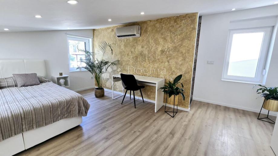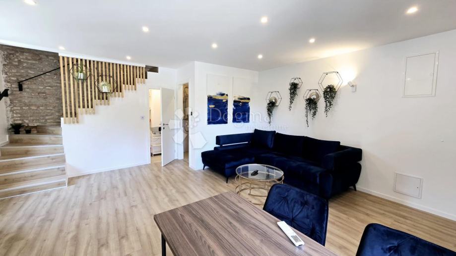 Cijeli stan je temeljito renoviran, opremljen vrhunskim namještajem i modernim uređajima. Obje etaže klimatizirane su za grijanje i hlađenje, dok je u donjoj etaži postavljeno električno podno grijanje za dodatnu udobnost tijekom zimskih mjeseci.