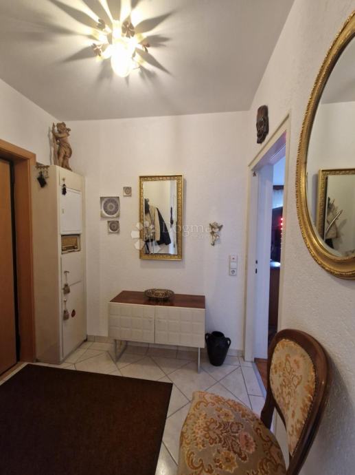 Kvadratura stana je 57.78 m2 a sastoji se od: jedne spavaće sobe, kuhinj s blagovaonom, kupaonice, ostave, garderobe, hodnika, dnevnog boravka i dva balkona. Na veći balkon izlazi se iz dnevnog boravka. Iz stana se pruža lijepi pogled na grad, Učku, Opatiju i more. Stan je uredan, opremljen svim potrebnim aparatima i stilskim namještajem.