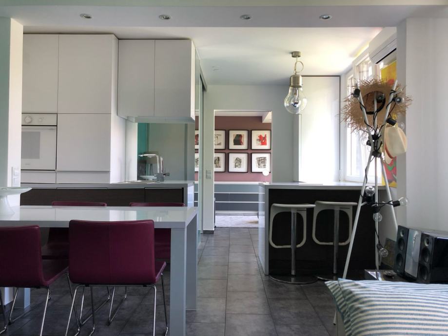 Na drugom katu zgrade na svega 30 m od mora, prodaje se dizajniran stan površine 47 m2. Stan se sastoji od ulaznog prostora, spavaće sobe, dnevnog boravka, blagovaone, kuhinje, kupatila i terase. Stan je moderno opremljen, grijanje na klimu.