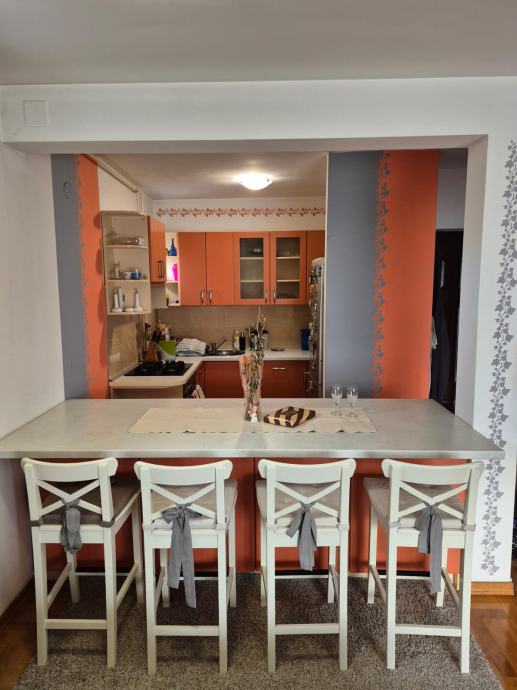 Prodaje se dvoetažni, namješten četverosoban stan u centru Velike Gorice, u maloj stambenoj zgradi od ukupno 4 stana, s korištenjem prednjeg dijela dvorišta (roštilj), i stražnjeg dijela dvorišta gdje su osigurana parkirna mjesta za stanare.