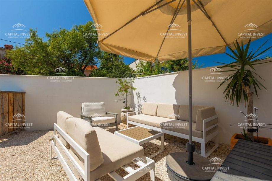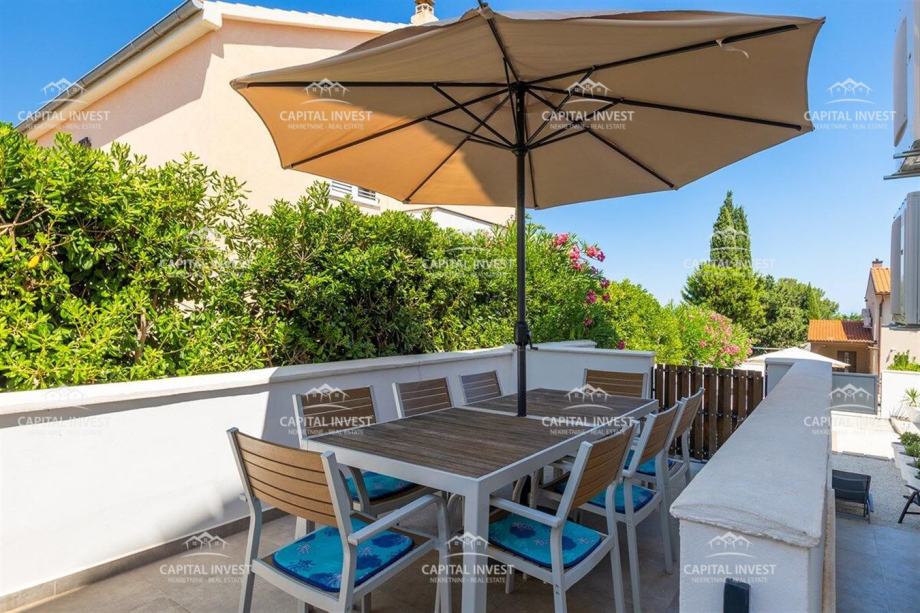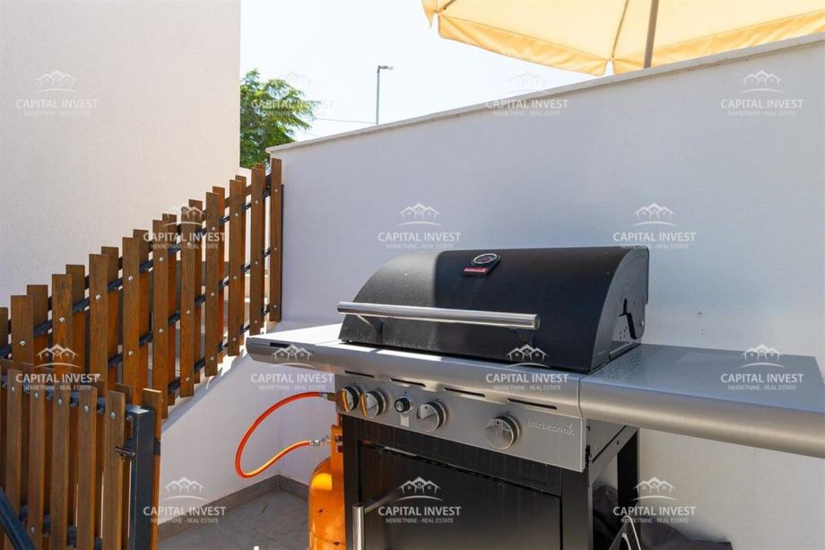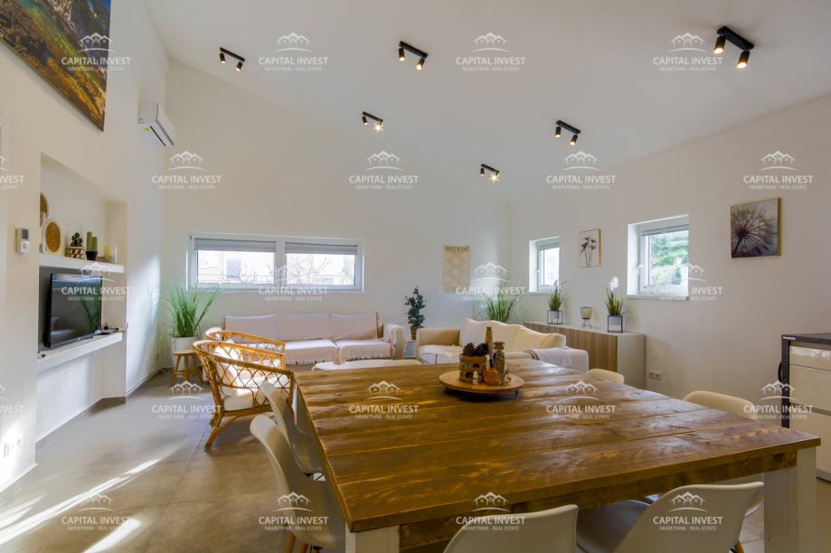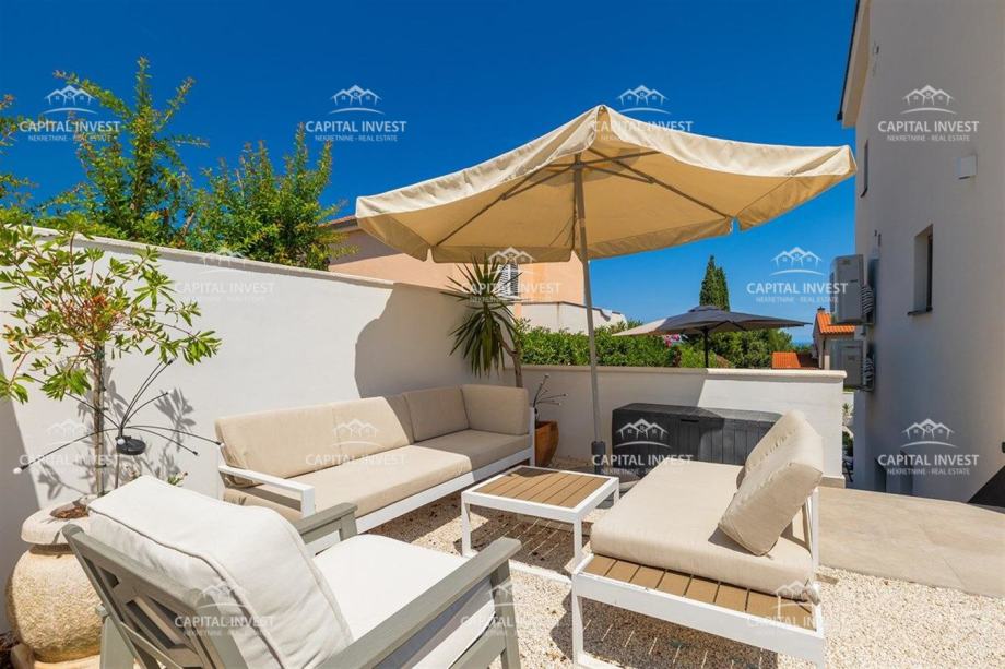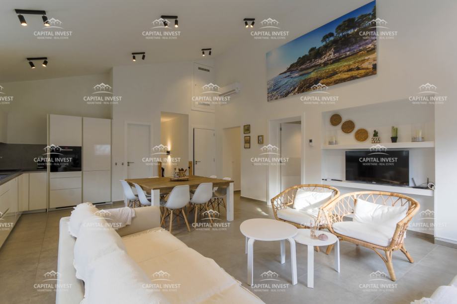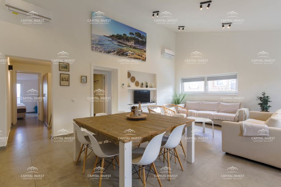 Prodajemo četverosoban stan površine 105 m2, smješten na prvom katu u atraktivnom dijelu Premanture, Medulin. Stan se ističe modernim dizajnom i promišljenim rasporedom, s tri spavaće sobe, prostranom kuhinjom, blagovaonom i dnevnim boravkom, tri kupaone i dodatnim prostorijama koje omogućuju udobnost i praktičnost za svakodnevni život. Orijentacija stana prema sjeveru i jugu omogućuje obilje prirodnog svjetla tijekom cijelog dana, naglašavajući vrlo sunčanu atmosferu prostora. Unutrašnjost je opremljena suvremenim uređajima, uključujući perilicu posuđa, perilicu rublja, TV, krevet, te funkcionalnu kuhinju s aparatima. Dvije natkrivene terase nude predivan pogled na more i prirodu, kao i mogućnost opuštanja na svježem zraku. Stan raspolaže klima uređajem i električnim grijanjem, a parkiralište osigurava praktičnost za svakodnevni život. Uređena okućnica površine 100m 2, roštilj i jacuzzi dodatno obogaćuju ponudu, čineći ovu nekretninu pravim izborom za one koji traže kvalitetan život u mirnom okruženju. Dozvoljeni su i kućni ljubimci, što ovaj stan čini pogodnim za obitelji.