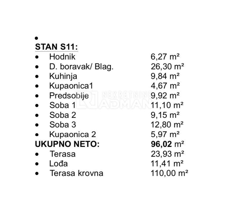 Atraktivan trosobni PENTHAUS sa prostranom krovnom terasom od 110m2, ostavlja zapravo dojam kuće.