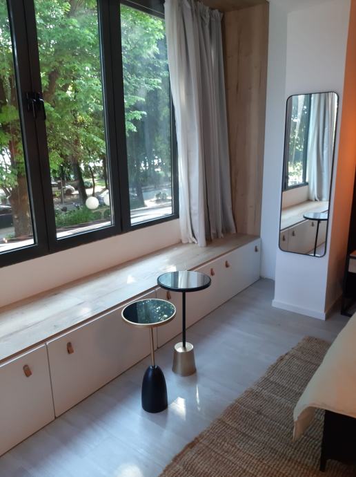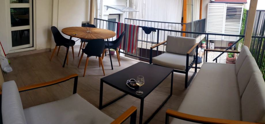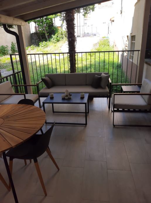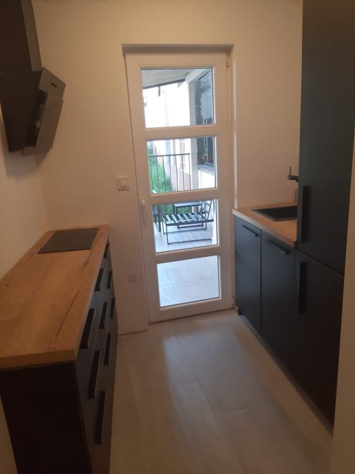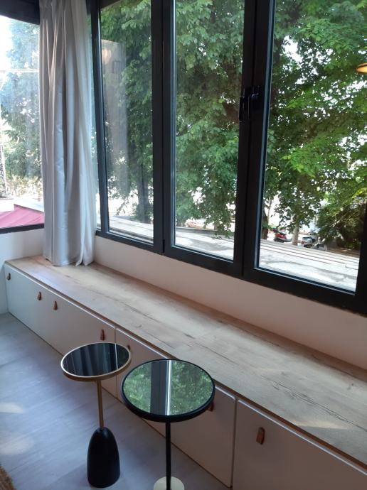 U strogom centru Crikvenice, na rivi, 30m od mora, iznajmlju se stan od 50m2 sa lodjom na jugu i terasom na sjevernoj strani. Stan se sastoji od terase, kuhinje, dnevnog boravka, wc-a, i prostrane sobe. Novo uredjeni stan, sto se vidi na prilozenim slikama. Mjesecna najamnina je 900 Eura.