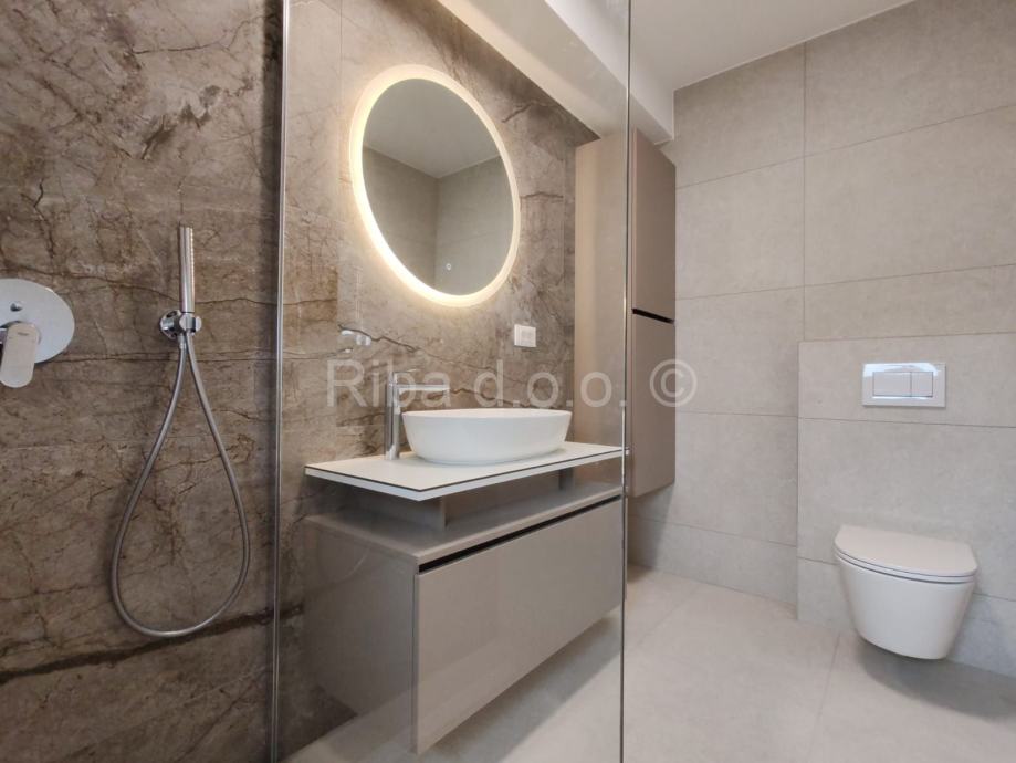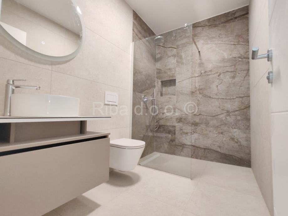Stan se nalazi u novijoj zgradi koja je građena visokim standardima kvalitete. Osim što nudi izuzetnu lokaciju i funkcionalan raspored prostorija, opremljen je brojnim modernim sadržajima koji jamče udobnost i sigurnost. U svakoj prostoriji nalazi se klima uređaj, dok je u kupaonicama i dnevnom prostoru postavljeno podno grijanje. Dodatnu sigurnost pružaju protuprovalna vrata i video nadzor, a svakodnevni komfor osiguravaju komarnici na prozorima, lift te termo fasada koja pridonosi energetskoj učinkovitosti.