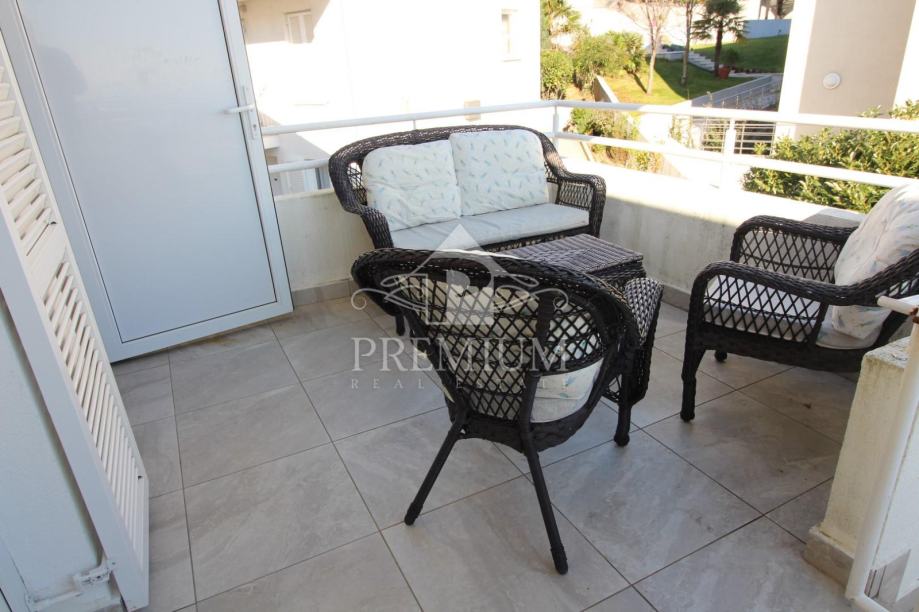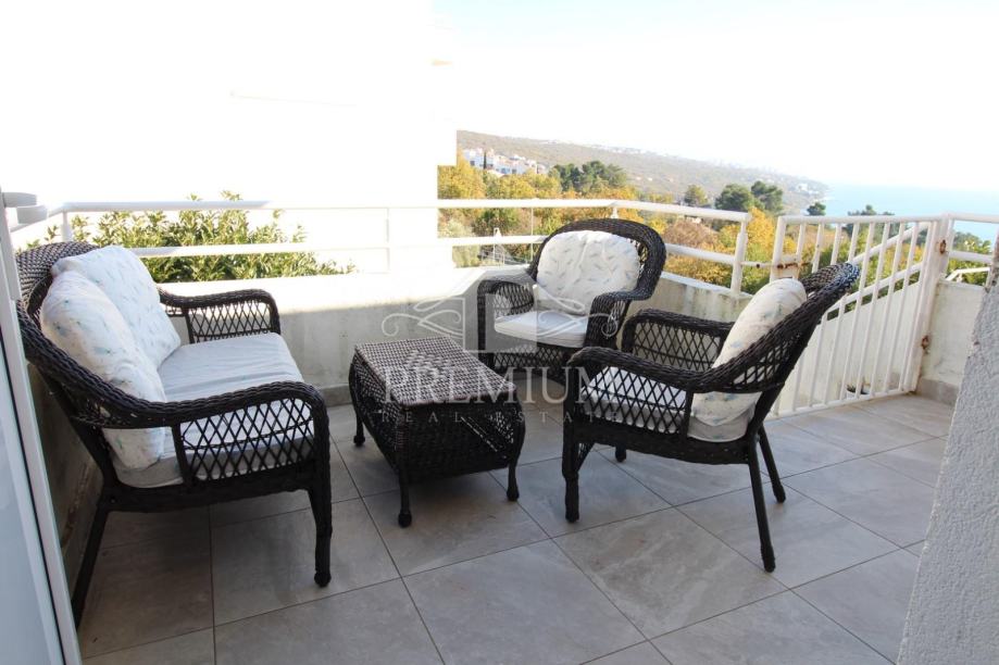 Dnevni boravak je velik, spojen sa kuhinjom i blagovaonicom, ima izlaz na balkon. Ispred ulaza nalazi se terasa sa pogledom na more.