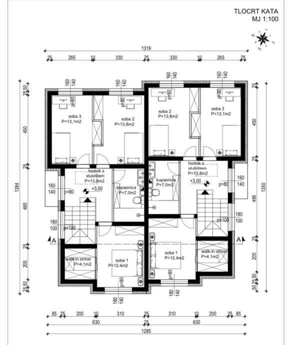Ukupno 4 spavaće sobe + dnevni boravak.