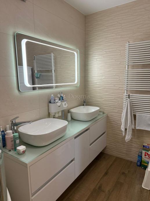 Stan je kompletno adaptiran i prodaje se namješten. Oprema uključuje namještaj po mjeri, hrastov parket, vrhunsku keramiku, Laufen sanitarije, Hansgrohe armature, drvenu vanjsku stolariju, protuprovalna vrata, klima uređaje, videoportafon te podno grijanje u kupaonicama.