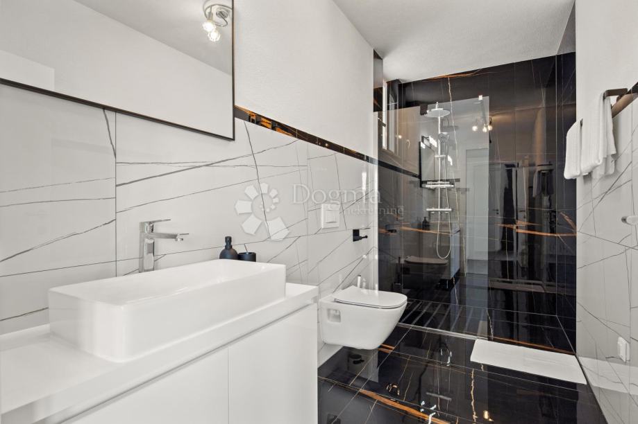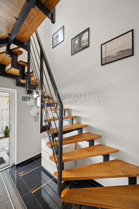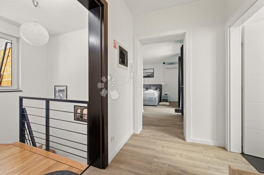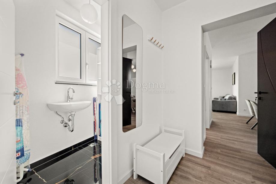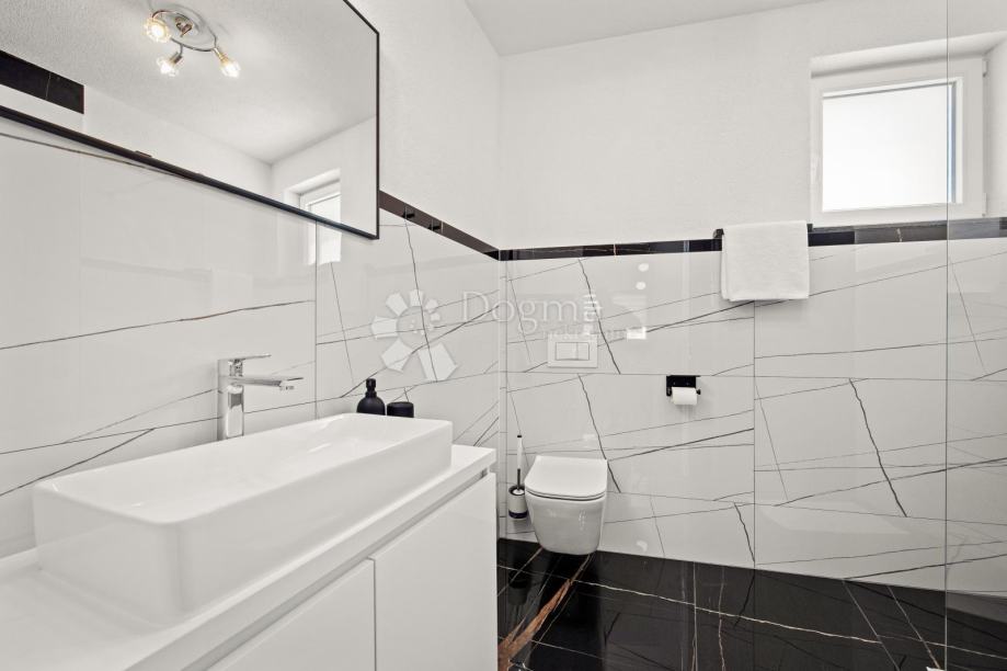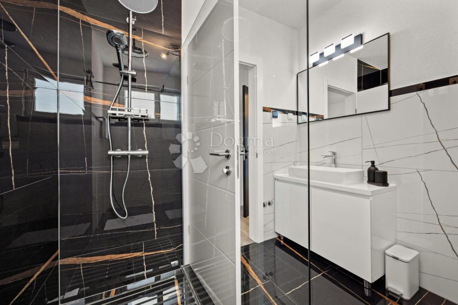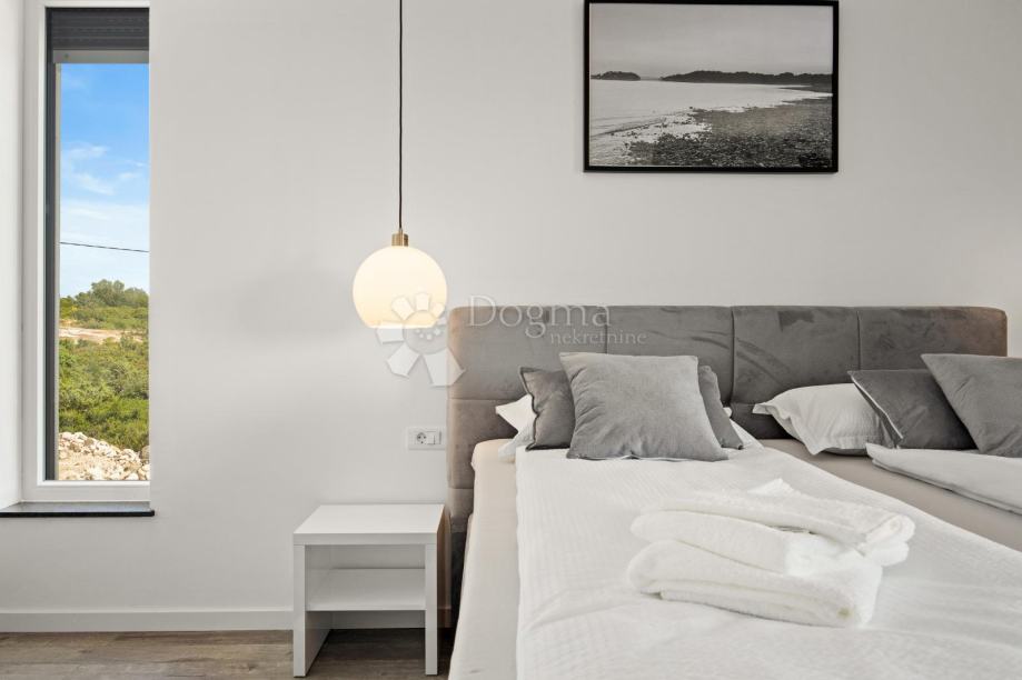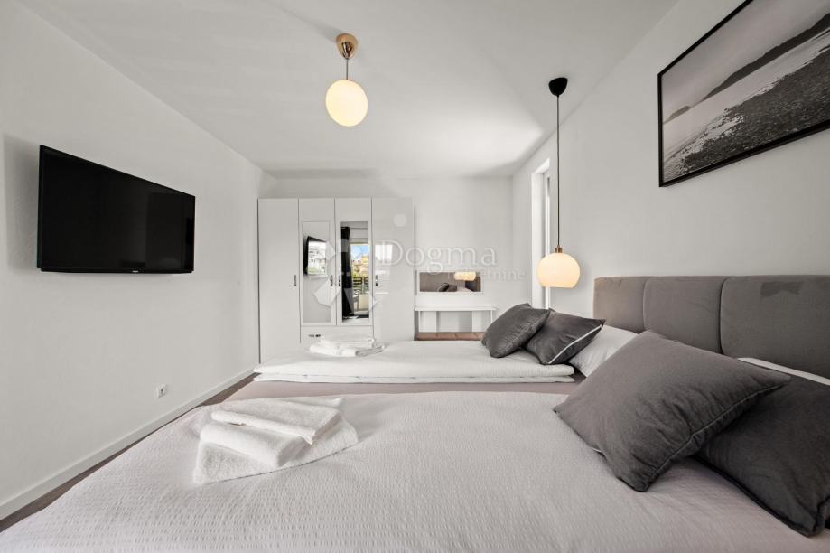 Prozori u dnevnom boravku i spavaćim sobama omogućuju obilje prirodne svjetlosti, dok s terasa i prozora možete uživati u prekrasnom pogledu na more. Otvoreni koncept dnevnog boravka i kuhinje stvara ugodnu atmosferu, idealnu za druženje s obitelji i prijateljima.