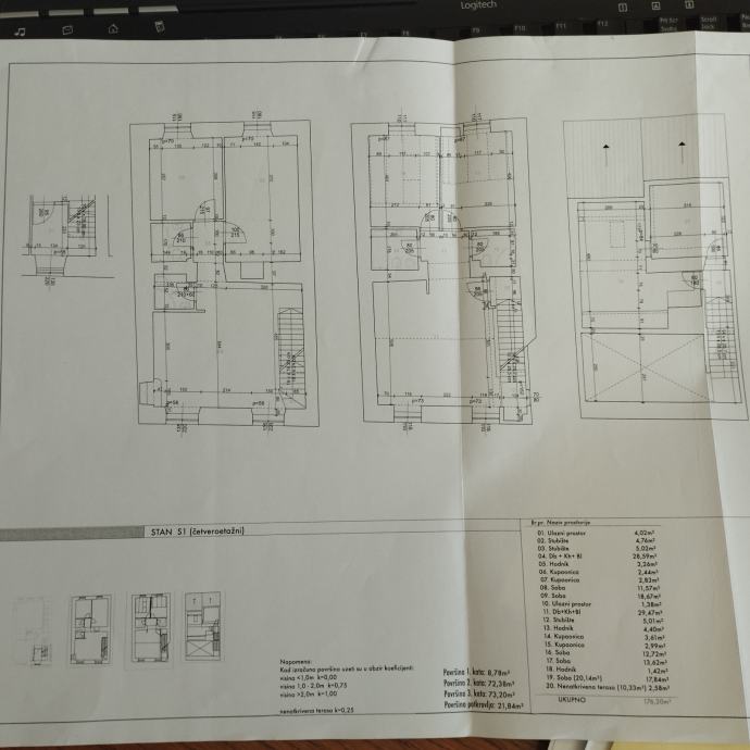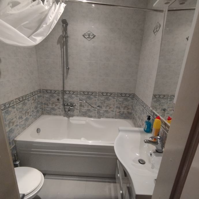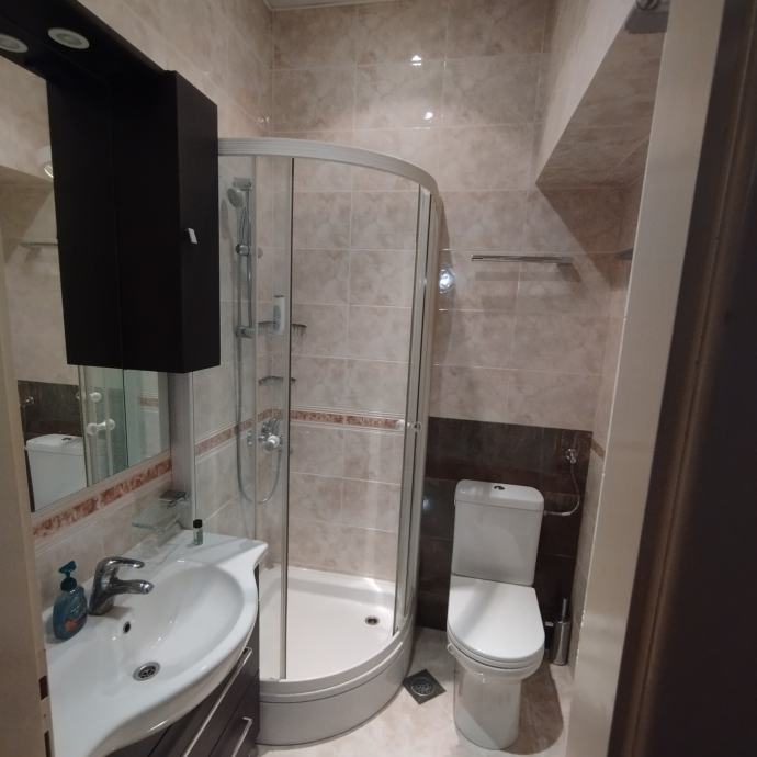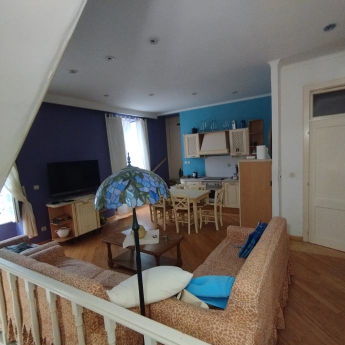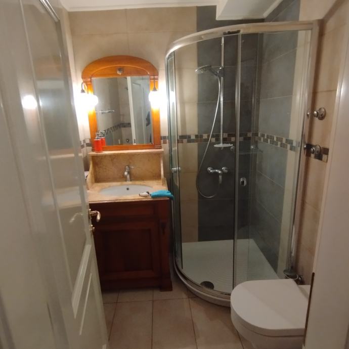 Terasa sa tušem na vrhu zgrade. Renoviran djelomočno 2020. Moguća fizička podjela na dvije stambene cjeline.
