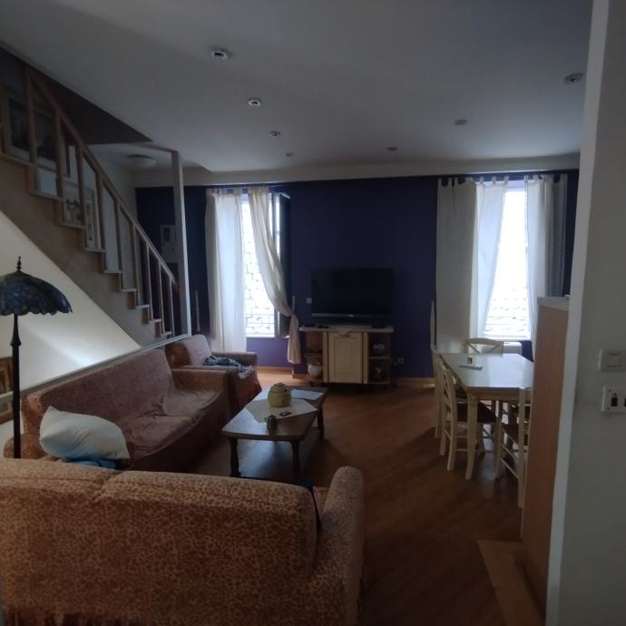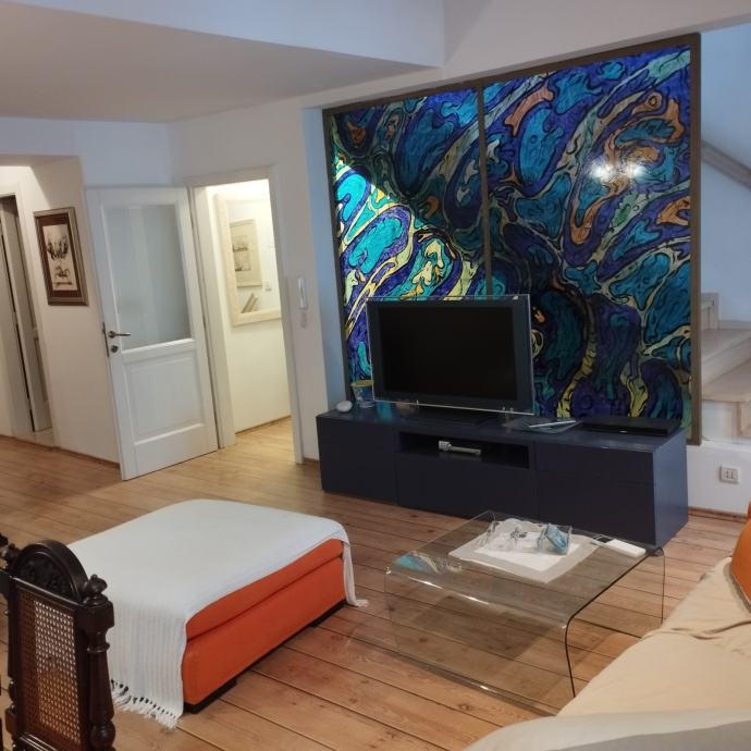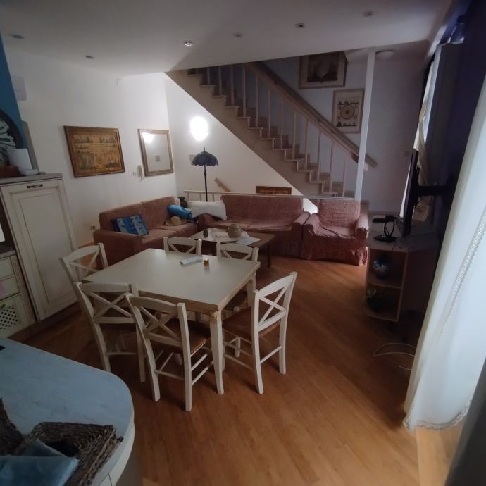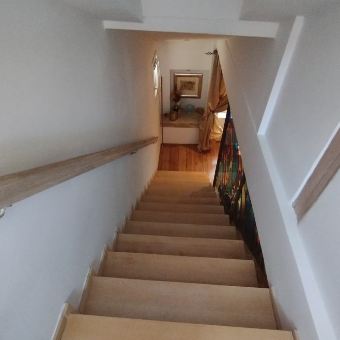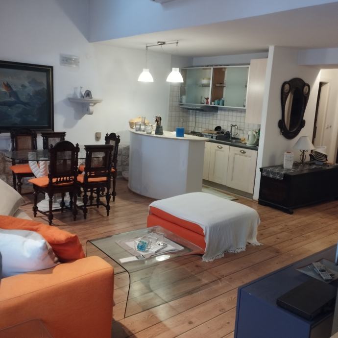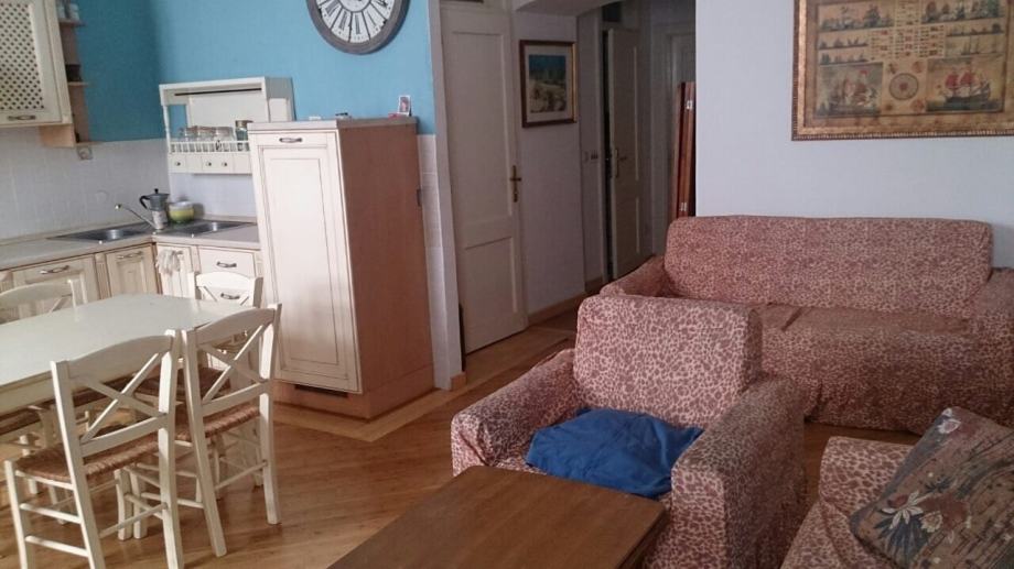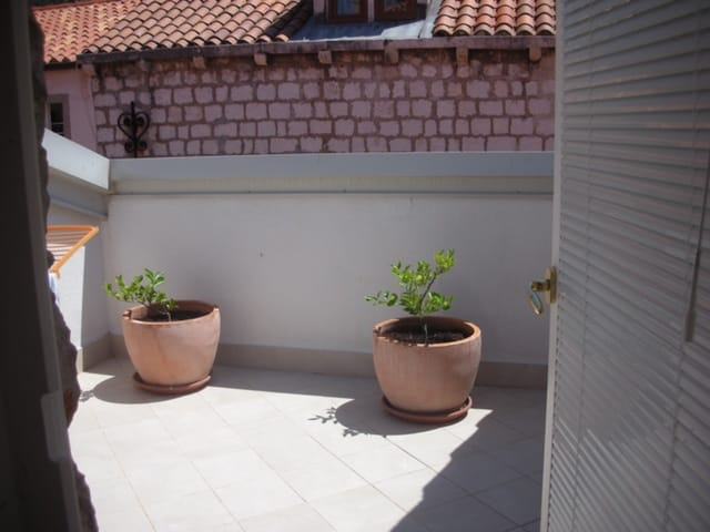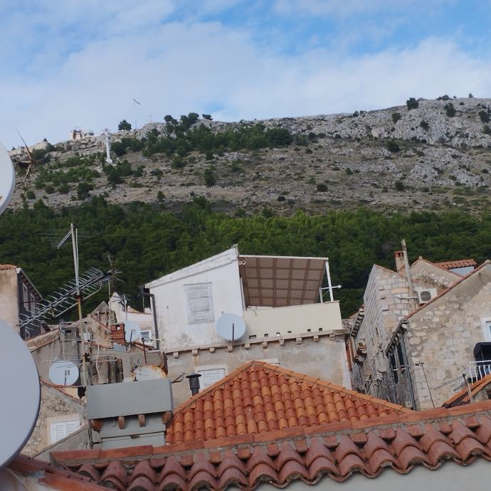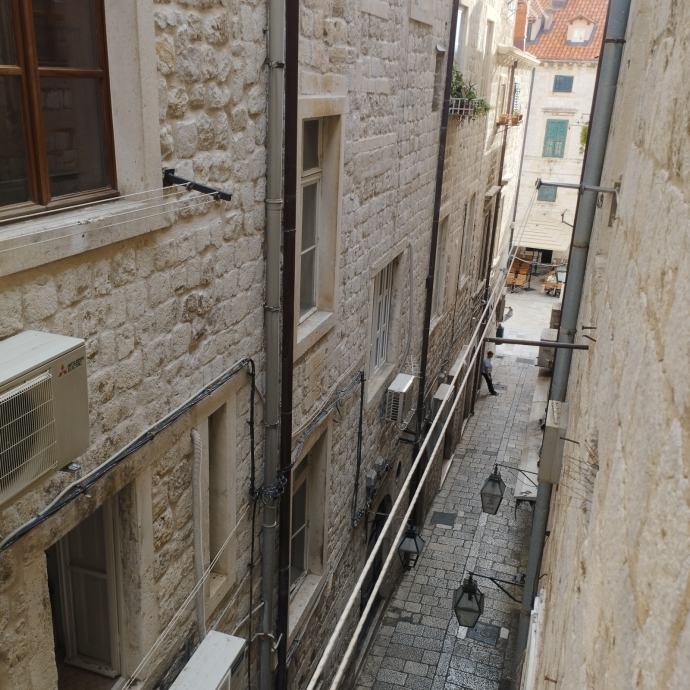 Troetažni stan u Starom gradu. Ulaz u zgradu iz ulice u razini Straduna. Pogled iz stana je na dvije paralelne ulice koje vode na Stradun.