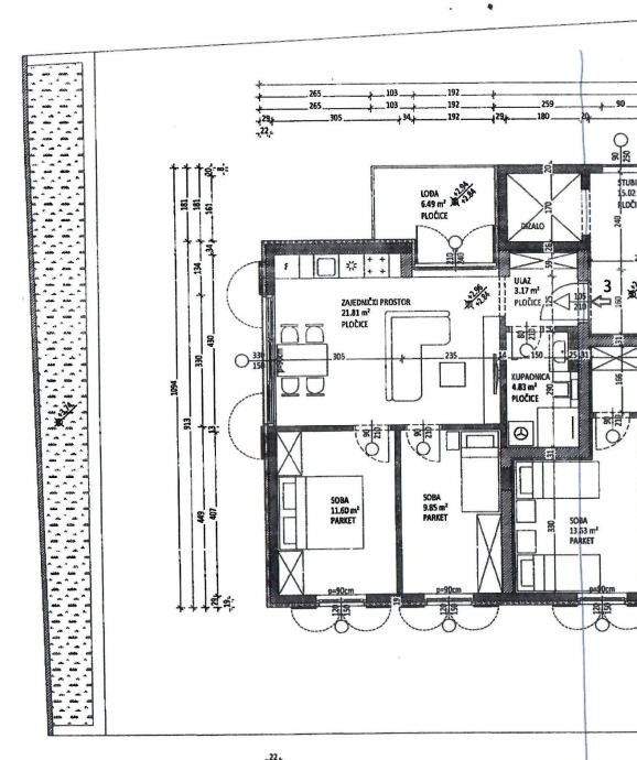 Stan 3 je dvosobni stan koji se nalazi na prvom katu zgrade.