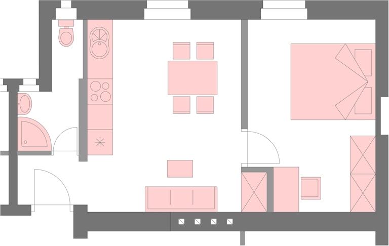 STAN 3. 34 m² se nalazi u prizemlju do dvorišta. Sastoji se predprostora sa ulazom u kupaonicu, kuhinje s blagovaonom iz koje se ulazi u spavaću sobu, drvena stolarija, laminat, klasično grijanje. Stanu pripada drvarnica br.3 i parkirno mjesto.