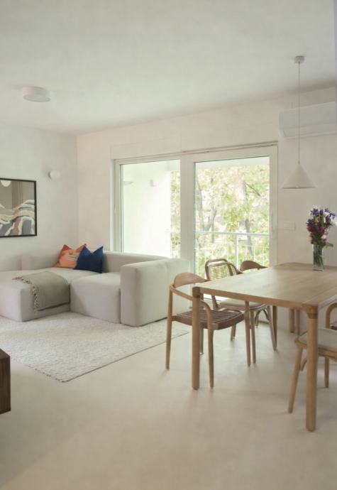Moderan i ugodan stan s puno prirodnog svjetla i pogledom na zelenilo. Prostor je funkcionalno i dizajnerski uređen, s otvorenim dnevnim boravkom, blagovaonicom i potpuno opremljenom kuhinjom te prostranim balkonom. Spavaća soba i kupaonica uređene su u elegantnom, minimalističkom stilu. Stan je klimatiziran, s ugradbenim namještajem i spreman za useljenje. Idealan za one koji traže miran i estetski ugodan dom.