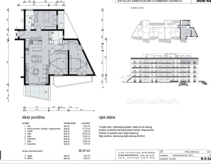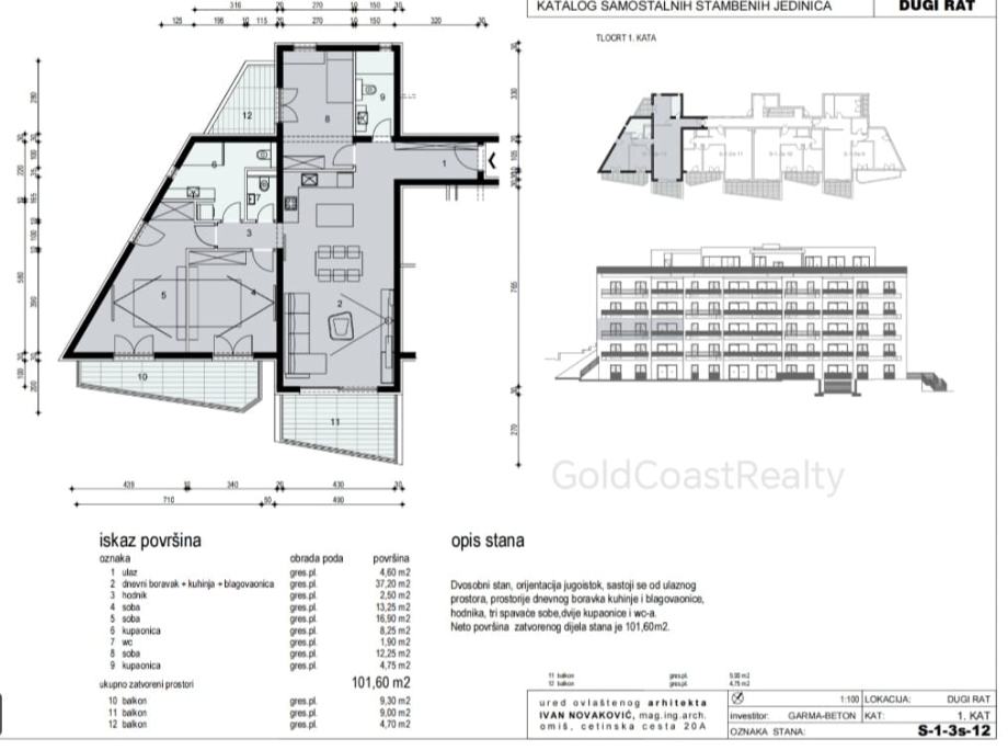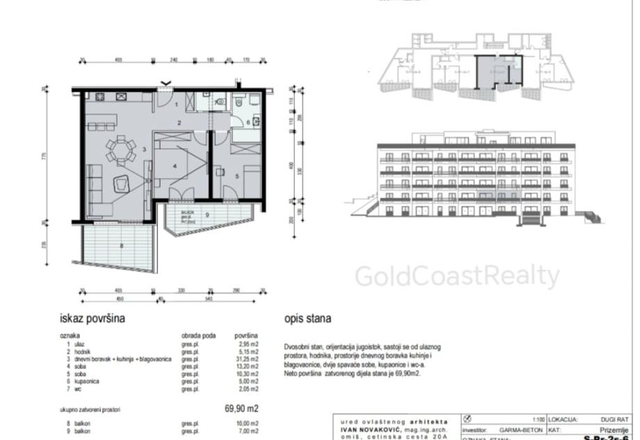 Posredujemo u prodaji stanova u Dugom Ratu nadomak Omiša. Ova moderna zgrada nudi udubnost i luksuz. Svi stanovi imaju pogled na more, ostavu i parkirno mjesto u garaži.Katovi su povezani liftom. Veličina stanova kreće se od 69m2 do 104m2. Za sve ostale informacije stojimo vam na rapolaganju.