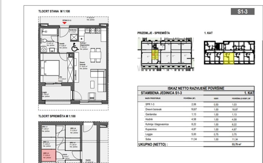 **Ukupno netto s koeficijentima: 53,81 m²**