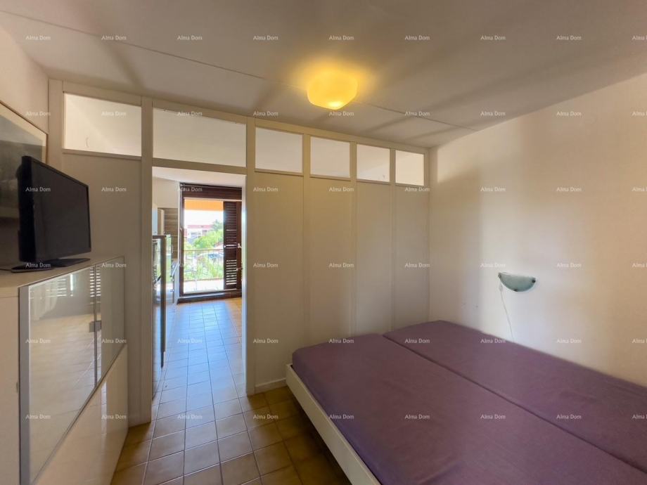 Stan se nalazi na prvom katu i sastoji se od jedne spavaće sobe, kupatila, kuhinje, blagovaonice i dnevnog boravka iz kog se izlazi na terasu sa koje se pruža pogled na more.