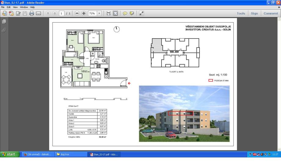 SOLIN-DUGOPOLJE trosban stan u novogradnji na II katu stambene zgrade , uredna dokuemntacija , odmah usljeiv , sastoji se od tri spavaće sobe , kupatila , predsoblja , kuhinje s blagavaonom i dnevnim boravkom te loggiom.Stan uređen ključ u ruke oprmeljen i namješten - posotoji mogućnost kupnje opremljenog stan.Stan ima i vanjsko parking mjesto u dvoru zgrade.