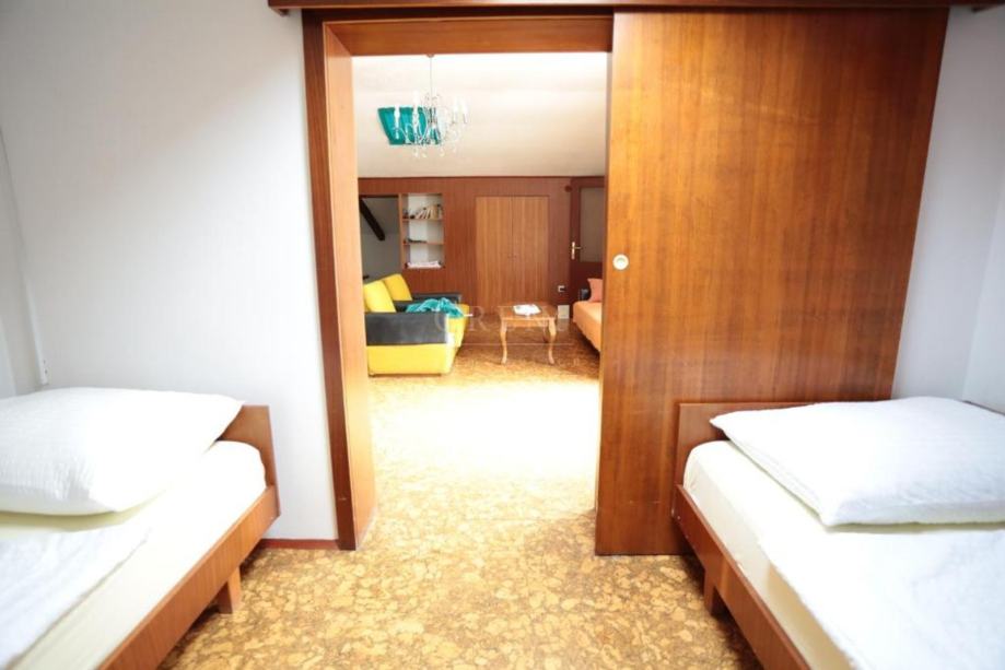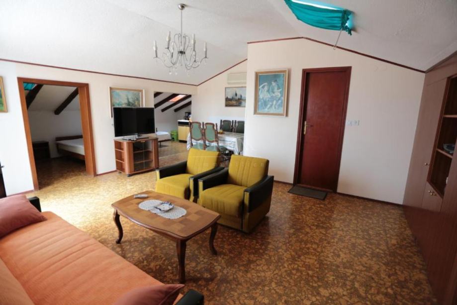 Stan - mansarda za dugoročni najam nalazi se u Poreču naselje Špadiči u privatnoj kući sa pogledom na more i udaljen 250 m od mora . Stan se iznajmljuje najmanje na 1 god. za cijenu od 1000 €/mj. + režije. Kućni ljubimci nisu poželjni. Stan ima centralno grijanje i klima uređaj , parking ispred kuće. 2 spavače sobe , veliku terasu sa pogledom na more i kompletno je namješten sa svim aparatima .