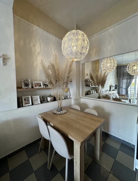 Stan je smješten na etaži prizemlja, iznad su još tri etaže. Sastoji se od dvije spavaće sobe, kupaonice, dnevnog boravka sa kuhinjom i blagovaonicom. Parking mjesto je osigurano u dvorištu zgrade.