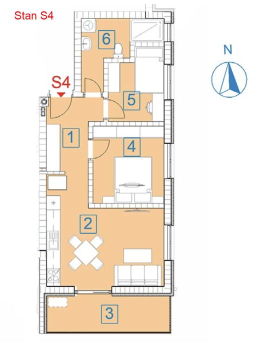 S4 - 54,71 m2 (2SS / DB / terasa) - 2.200 Eur/m2