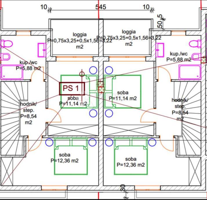 Ližnjan, stan na dvije etaže s površinom od 90m2. U prizemlju se nalazi dnevni boravak, kuhinja s blagovaonicom, kupatilo i lođa, dok se na drugoj etaži prostiru dvije spavaće sobe, kupatilo i lođa. Kuća posjeduje uređenu okućnicu od 70m2, vlastito parkirno mjesto te vanjsko spremište.
