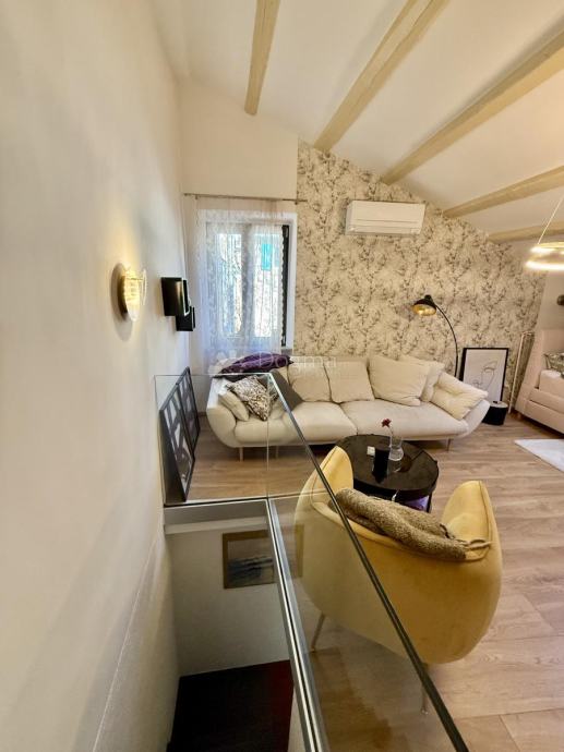 U srcu jednog od najljepših gradova na Jadranu, svega nekoliko koraka od rive i mora, smješten je ovaj šarmantni dvoetažni stan.