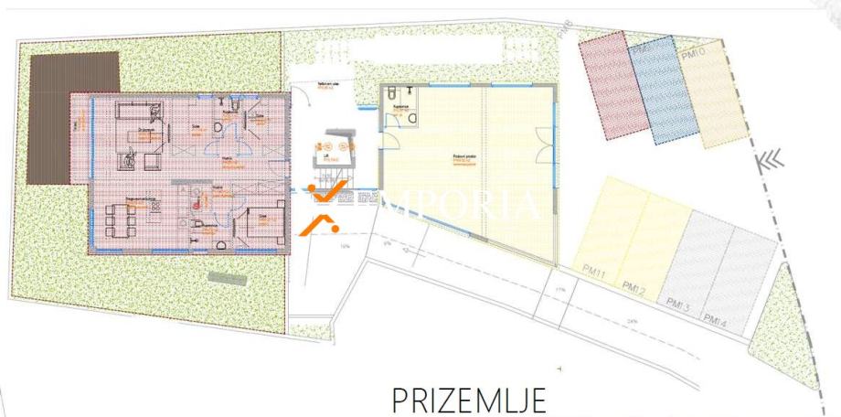 Stanu pripadaju dva garažna parkirna mjesta, a ukupna neto površina s pripacima iznosi 81,70 m².