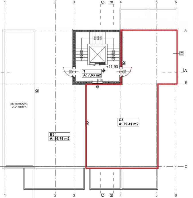 Stanu će dodatno pripadati krovna terasa veličine 79,41 m2(korisna površina 19,85 m2), ostava u podrumu te jedno parkirno mjesto.