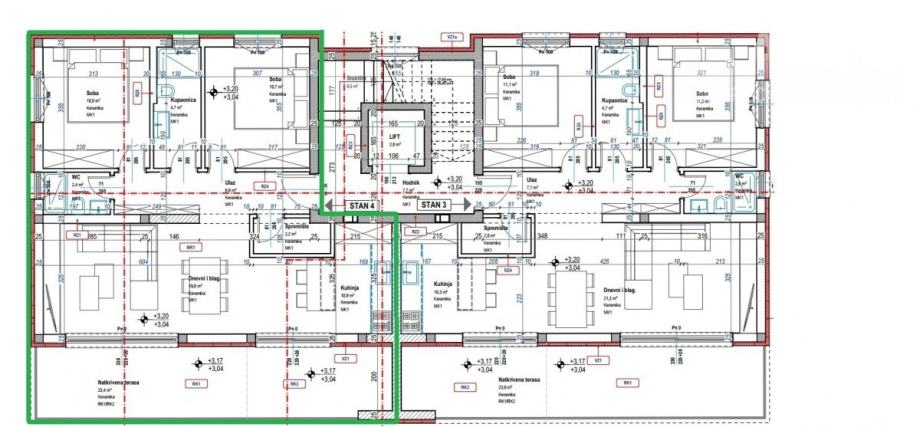 Stan 4 nalazi se na prvome katu zgrade, ima neto površinu od 80,2 m2 te se sastoji od hodnika, dnevnog boravka, blagovaonice i kuhinje u otvorenom stilu, dvije spavaće sobe, kupatila te gostinjskog wc-a.