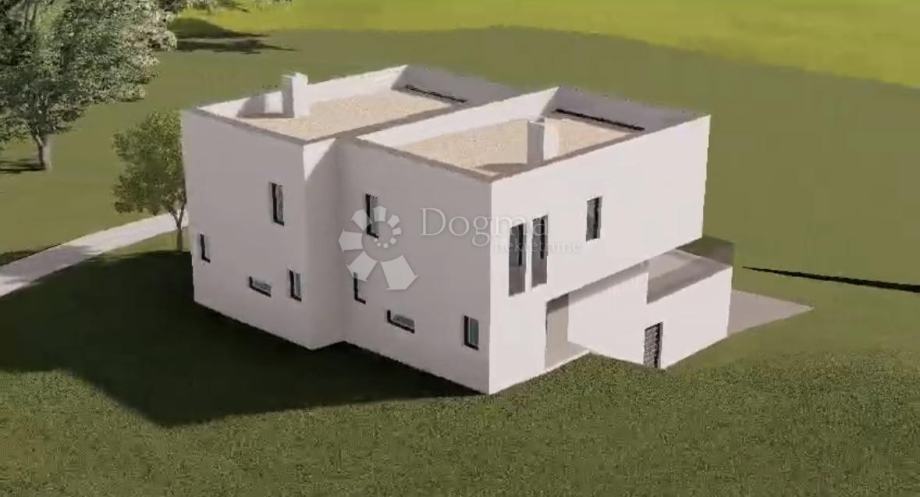 Ova suvremena vila s čistim linijama i ravnim krovom ističe se modernim dizajnom te pametnim rasporedom prostora. Dvoetažna kompozicija stana, staklene ograde koje povezuju interijer sa prirodom, natkrivene terase i elegantno integrirane garaže pružaju estetski sklad. Stanu pripada privatna garaža sa dva parkirna mjesta te vlastita uređena okućnica.