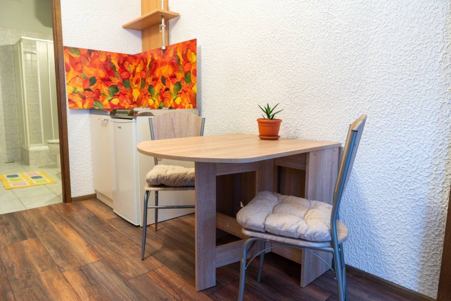 Stan se sastoji od sobe sa 13,50 m2, kuhinje sa 10,65 m2, kupaonice sa 5,17