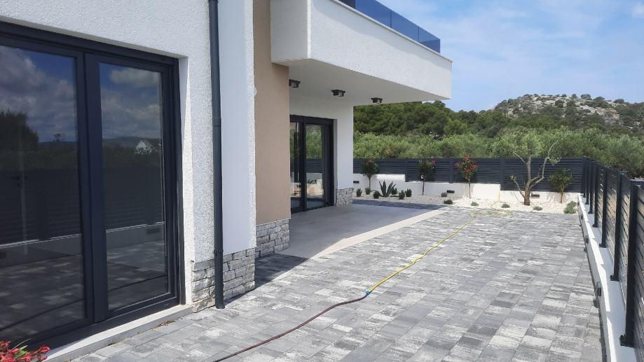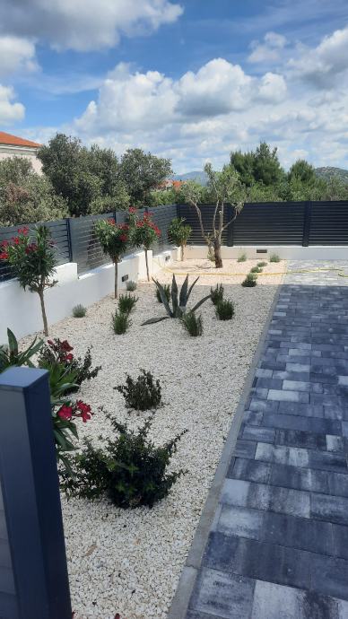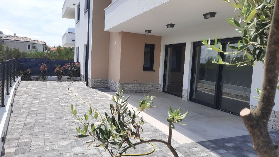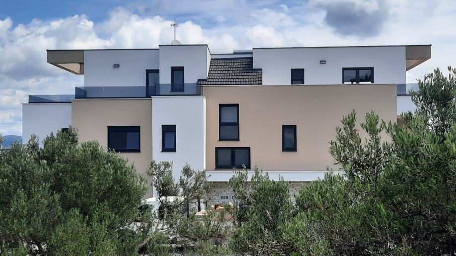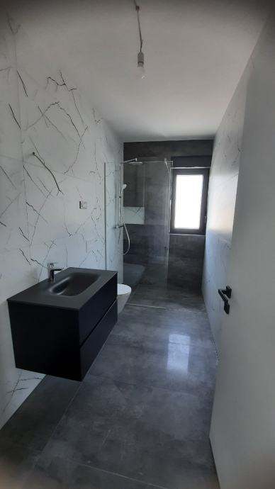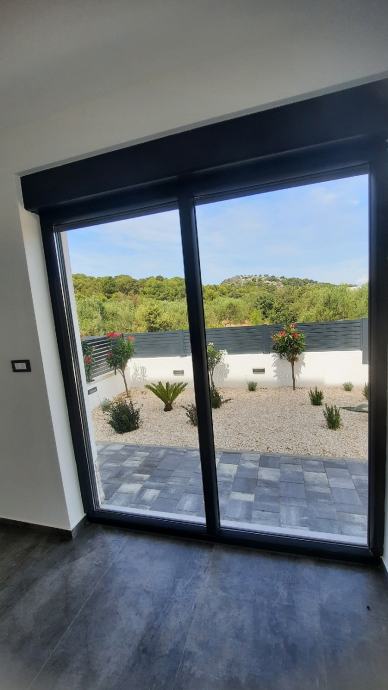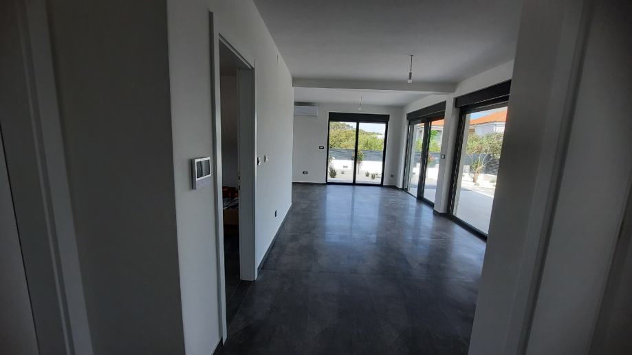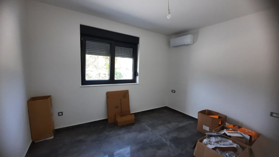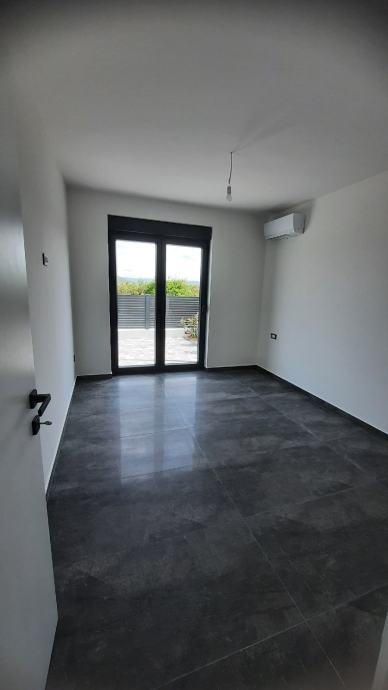 Sastoji se od dvije spavaće sobe.kupaonice,kuhinje i dnevnog boravka iz kojeg se izlazi na natkrivenu terasu od 14m2 i u prekrasan vrt od 85 m2.