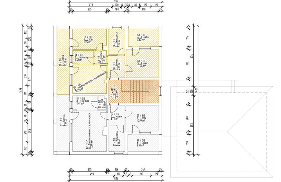 Tlocrt označen sivom bojom.
