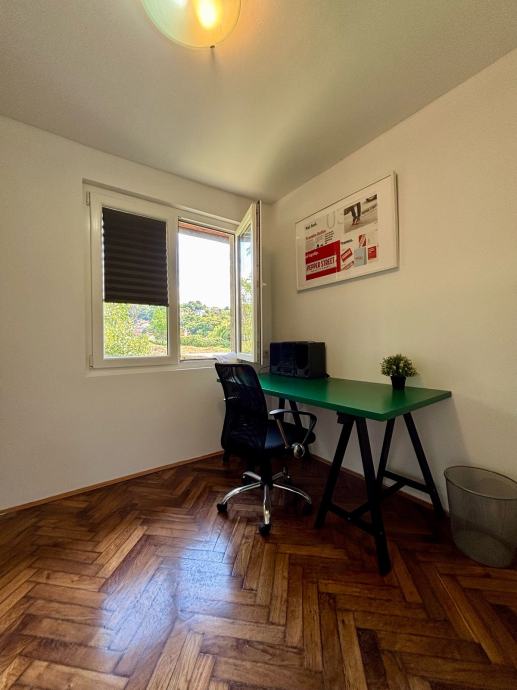 Zeleni dio grada, blizina svih sadržaja, dućan (50m) shopping centar (300m), blizina škole, ambulante i ljekarne u krugu 300 m., tramvajska stanica (50m). 15 minuta do Trga s tramvajem.