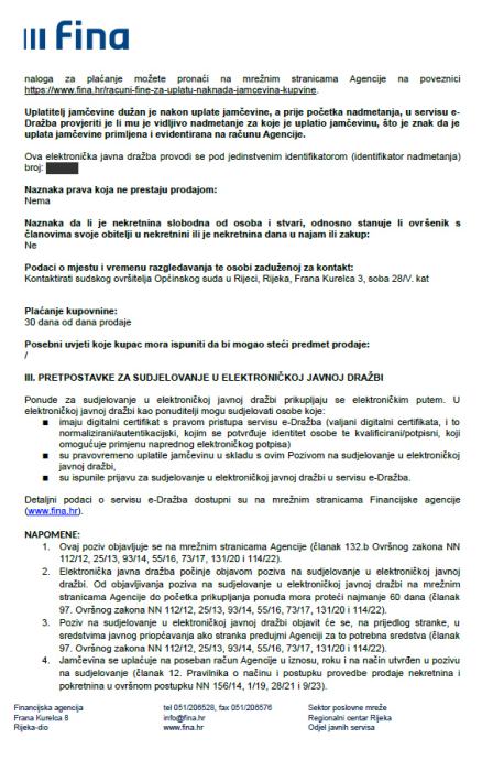 Uvjeti i način provedbe dražbe navedeni su u istaknutom pozivu na sudjelovanje.