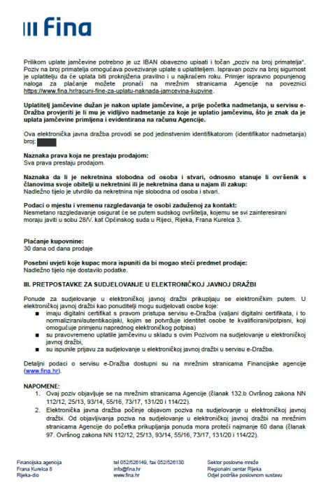 Uvjeti i način provedbe dražbe navedeni su u istaknutom pozivu na sudjelovanje.